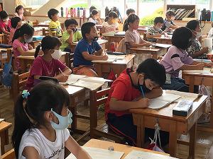 3年生は、4校時算数の確認のプリントに取り組んでいました。担任の木村先生が一日出張でしたので、市村先生との学習でした。