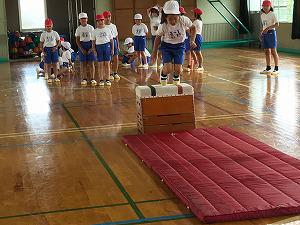 3校時、3年生は体育でした。体育館にマットと跳び箱を用意して、開脚跳びができる子は開脚跳びを、できない子は跳び箱に乗るようにしていました。新型コロナウイルスの影響で、馬跳びができません。開脚跳びは遊びの中で身につくことができますので、ご家庭で、親子で取り組んでみてください。