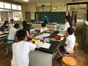 3校時、5年生は音楽で、音楽室でリコーダーの練習をしていました。横や前後の子が近寄らないよう距離を保っての練習です。練習後に、全員での演奏はまとまったきれいな音を奏でていました。