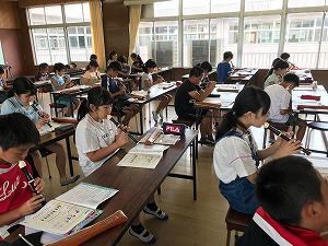 2年生は、5校時学級活動でした。9月25日に行われる遠足でのバスの中でのレクを確認していました。8班ある班で、行きに4班が帰りに4班が行うことになりました。