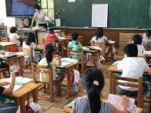 3校時、1年生は国語の授業でした。「一」から「九」までの漢字の学習をした後、「やくそく」の音読の練習です。スラスラと読んでいる子、たどたどしい子など差があるようでした。語を塊として捉えなくては、流暢に読むことはできません。ご家庭でも音読する様子を聞いてください。