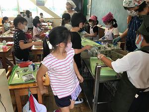 今日は9月1日の防災の日から遅れて2日目、防災給食がありました。ご飯、レトルトシチュー、アロエヨーグルト、小魚、牛乳です。ご飯以外は調理をしてないもので、レトルトシチューも温かいものではなく、防災での食事をイメージした給食でした。「美味しいですか」と子どもたちに聞くと「美味しい」という返事がありました。配膳は簡単でしたが、後片付けに苦労したようです。