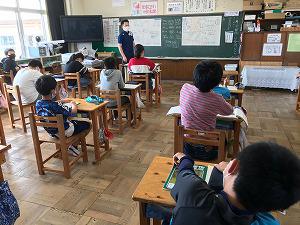 5校時、国語の時間でした。感じの広場という学習で、学校の場面にある漢字を使って短文を作り、発表していました。漢字は使って覚えるものですので、子どもたちは自分が考えた短文を積極的に発表していました。