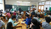 まず1年生達は、棒を置く向きや、できた形の向きを相談しながら、ペアで協力して自分たちで選んだ形を作りました。そして、数え棒の数や作った形の名前などをみんなの前で発表しました。