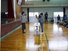本日の業間に、体育館で「図書支援員さん感謝の会」を児童の進行で行いました。
