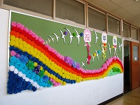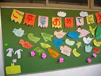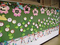 各学年の廊下にも掲示板一杯に手作りの飾り付けがされて、卒業ムード一杯です。