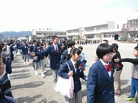 式後、離任者は、児童がつくる花道を、握手やハイタッチをしながら名残を惜しんで通って会場を後にしました。心に残る、素敵な離任式でした。