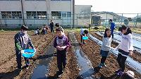 5年生が、ジャガイモの植え付けを行いました。3月22日(火)にマルチをかけるところから、子ども達の手作業で行い、ジャガイモの種芋を丁寧に植え付けました。6月の収穫が今から楽しみです。今年度は「男爵」と「きたあかり」の2つの品種を植えました。