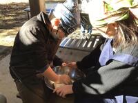 午前中の活動は、第2陣が「ピザづくり」、第3陣が「火起こし、杉板焼き」です。