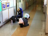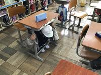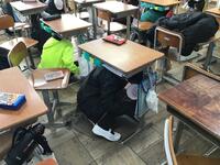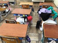 児童らは、シェイクアウトの姿勢をとり、身の安全を確保していました。