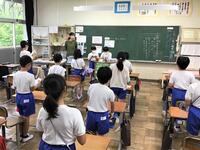 時折吹く風が心地よく感じましたが、まだまだ蒸し暑い朝でした。3連休を無事に過ごした子どもたちが、たくさんの方に見守られながら、一生懸命に登校しました。