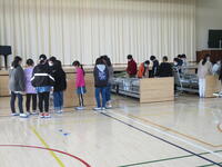 5年生が、午後体育館・6年生の教室・昇降口等で準備を行いました。1時間半弱の時間で準備が終わりました。5年生の手際の良さが素晴らしい活動ぶりでした。5年生自身も来年の卒業式に向けたスタートの準備となりました。