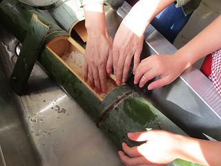 「竹筒ご飯づくりの体験活動」では、親子で米とぎを行い、孟宗竹筒の中に入れたたき火で「竹筒ご飯」をつくりました。竹の太さや長さによってお米の炊きあがりが違うところが、おもしろかったようです。