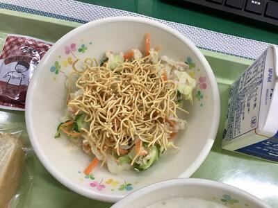 パリパリサラダと果汁グミ。よく噛んで食べましょう。