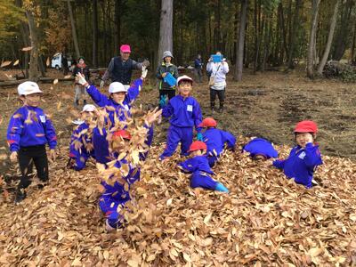 子供たちは、木の実探しや落ち葉遊び、生き物探しなど、里山での様々な遊びを通して、季節を感じたり、自然の中で遊ぶことの楽しさを感じたりすることができました。