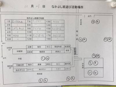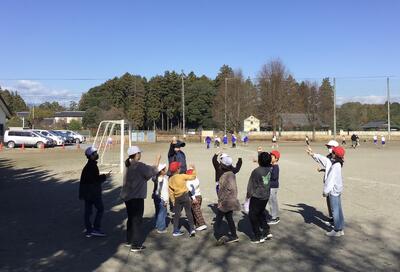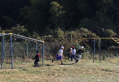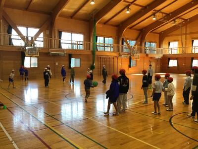 1年生から6年生までで構成されたなかよし班ごとに、校庭や体育館で遊びます。