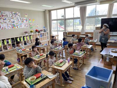 1年生からは「レストランより美味しい!」、「今日が一番美味しい!」など、大絶賛でした。小学校の給食で、初めて出会う食材や料理もあることでしょう。さまざまな経験を通して、食の大切さを学んでいって欲しいと思います。