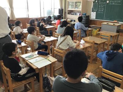 3時間目、1年生が、元気に体育館への並んで行った後、お隣の2年生教室がしんとしているので、のぞいてのぞいてみると・・・