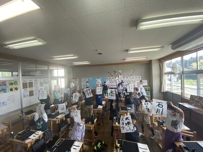 おまけです。3年生が初めてのお習字(毛筆での書写)でした。