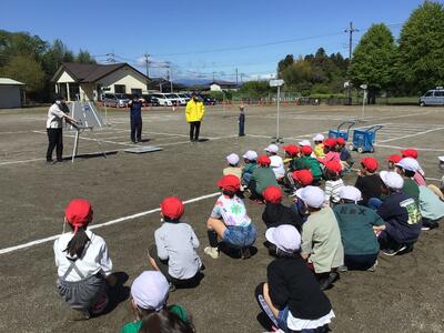 交通安全教室です。鹿沼市生活課交通政策係との連携により行いました。