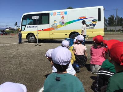 絵や図を見たり、本物のバスの車の動きを見たり、横断の練習をやってみたりして学習できたのでとてもよく分かりました。今日から忘れずに実践しましょうね。