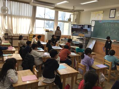 今日は、「日本の音楽~箏 和楽器の調べ」と題して講師の先生をお呼びして、箏の演奏を聞いたり、演奏にチャレンジしたりしました。4、5年生の音楽の授業として行ったものですが、日本の伝統芸能に親しむ良い機会となりました。