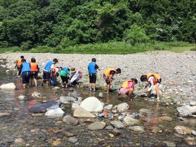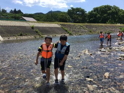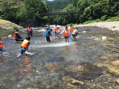午前中は、楽しみにしていた川遊びでした。