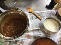火起こしが成功した班の火のおかげで、次は野外炊飯です。