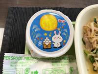 うさぎ型のハンバーグとうさぎの絵のかまぼこ、デザートはお月見うさぎです。