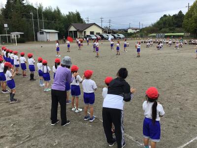 今日の業間は運動会の全体練習の2日目でした。