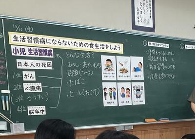 5年生が栄養教諭による学級活動の授業「生活習慣病にならないないための食生活をしよう」を実施しました。