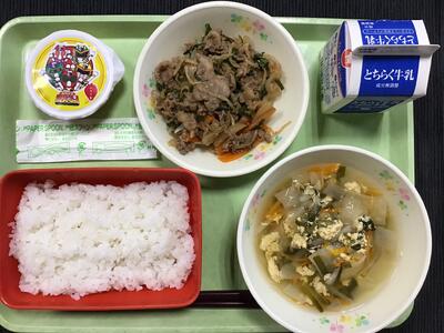 献立は「ごはん、牛乳、かぬま和牛のプルコギ風、かんぴょうとにらの卵汁、カヌマンゼリー」でした。かぬま和牛やにらなど、鹿沼市の特産物のおいしさを感じながら食べられたかと思います。