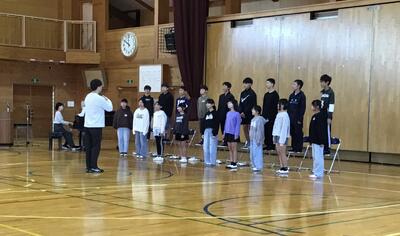 今日の全校集会は、明日開催の鹿沼市小中合同音楽会に参加する6年生の合唱の披露でした。