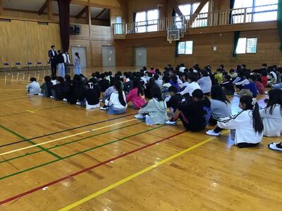 (今年度から2学期制のため、市内の学校は10月の2週目までは1学期です。そのため「始業式」ではなく「朝会」です。)
