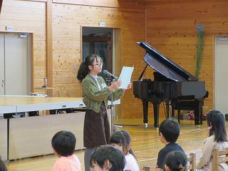 移動音楽鑑賞教室「混声四重奏と遊ぼう!!」が体育館で行われ、6年生も壇上に上がりました。オペラ「セヴィリアの理髪師」では、男性職員が登場し盛り上がりました。