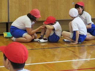 5月に入ると、新体力テストです。1年生にとっては、すべてが初めてのことで、ちんぷんかんぷんなので、ピアサポートの6年生が頼りです。ペアを組んで、やさしく教えました。