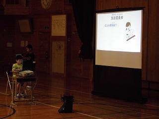 児童会委員会集会です。各委員会の活動内容等について全校生に理解してもらうために、各委員会の代表としてパワーポイントにまとめたものを発表しました。
