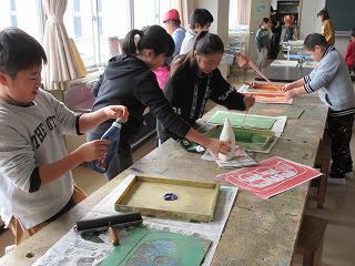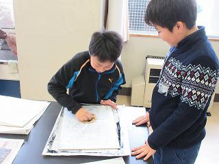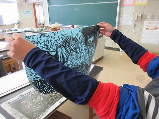 木版画は2学期の彫りの段階から、刷りに入りました。