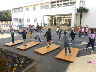 中庭には、縄跳びをする子どもたちが大集合です。2学期のときよりも、縄跳び人口が増えています。寒さを吹き飛ばし、外で元気に遊ぶ。よい傾向です。ジャンピングボードは、体育委員会の子どもたちが朝のうちに準備し、昼休みが終わると片付けることになっています。いつもありがとう。