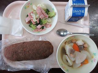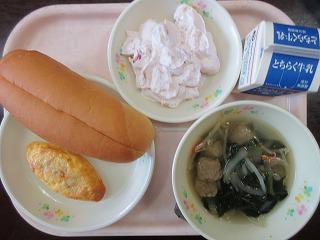 「バターロール、牛乳、オムレツ、ポテトサラダ、白菜シチュー」です。カタカナの多い献立ですが、漢字の白菜にはカゼから体を守るビタミンCやお腹をきれいにする食物繊維がたくさん含まれているそうです。