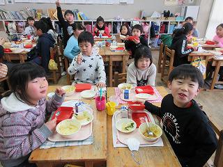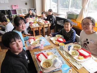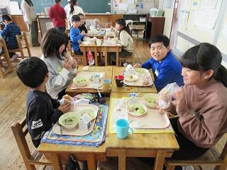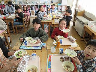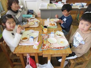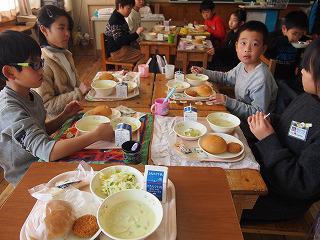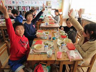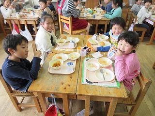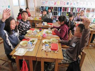 「麦ごはん、牛乳、ポークカレー、こんにゃくサラダ、ミニフィッシュ」です。今日から、6年生の校長室会食が始まりました。卒業を前に、思い出の給食献立や6年間の小学校生活を振り返って、楽しい時間を過ごしました。