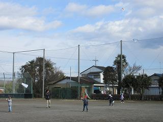 先日の授業で絵を描いたり文字を書き込んだりしていたタコを上げていました。校庭を走り回っている子どももいれば、時折吹く風をとらえて空高く上げている子どももいました。子どもたちの表情は写真からは分かりませんが、「先生、見て。見て。」と高く上がったタコを見上げとても楽しそうでした。