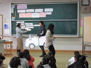 「ようすをあらわすことば」の単元で、2年生の研究授業がありました。写真や絵を見て、様子を表す言葉(擬態語・形容詞・比喩)をワークシートに書き込み、友達のワークシートを見合ったり、先生と一緒に確認したりしました。そして、今日の学習を振り返った後、参観した先生と一緒にビンゴゲームをやりながら、言葉と絵を組み合わせていろいろな様子を表す言葉を学習しました。