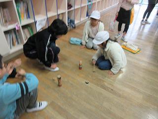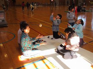 「むかしのおもちゃで遊ぶ会」で、いつもお世話になっているお隣の「ほっとホーム津田」の方々が来校し、子どもたちに竹とんぼ、メンコ、お手玉、ダルマ落とし、おはじき、羽根つき、あやとりの遊び方を教えてくださいました。子どもたちも大喜びでした。ありがとうございました。