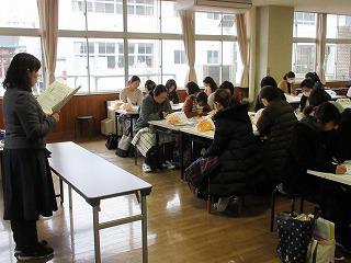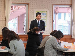 4月に入学する新1年生の保護者の方を対象にした説明会を開きました。保健、学校徴収金、給食、特別支援教育、入学までに準備しておくことのほか、PTAや子ども会育成会についても担当からの説明を聞いていただきました。最後に、1年生だけの下校班と当番を決めたり、学童保育「わくわくクラブ」について手続きをしたりしました。