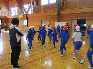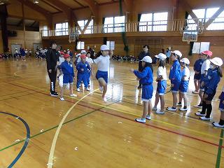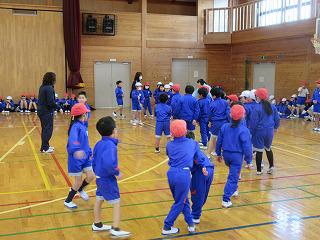 1年生にとって、初めて参加するなわとび集会でした。続けて跳べるように、体育の授業や昼休みなどに練習をしてきました。縄を回すのは先生方で、回る縄を見ながらタイミングよく跳んでいました。よくがんばりました。