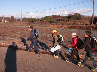 今朝も冷え込みました。中・下深津・丸笠方面からの登校には、保護者の方が付き添ってくださっています。寒い中、ありがとうございます。