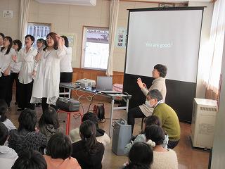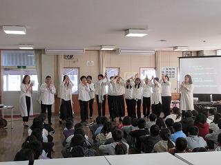 5・6年生合同で音楽科の授業です。講師は、Heaven`s Joyのみなさん。最初は、「ゴスペル」とは何ぞや?とおっかなびっくりの感じでしたが、そのすばらしい歌声とお話に引き込まれ、「Every Move I Make」をいつの間にかみんなで大合唱していました。最後に、「君は愛されるために生まれた」という愛に包まれた素敵な歌をプレゼントしてもらいました。ありがとうございました。