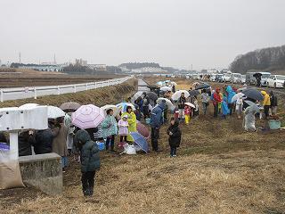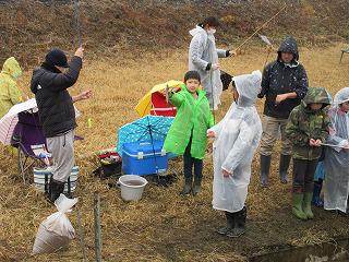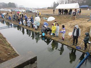 2月16日(日)深津地区植竹川河川敷において、北犬飼地区青少年育成市民会議主催のマスつり大会が開催されました。時折雨降りのコンディションとしては悪い中でしたが、たくさんの太公望が集まりました。本校の子どもたちも家族連れで、釣り糸を垂らしたくさんのマスを釣り上げていました。