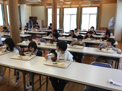 今日もおいしくいただきました。おいしく食べた後、4〜6年生は内科検診がありました。